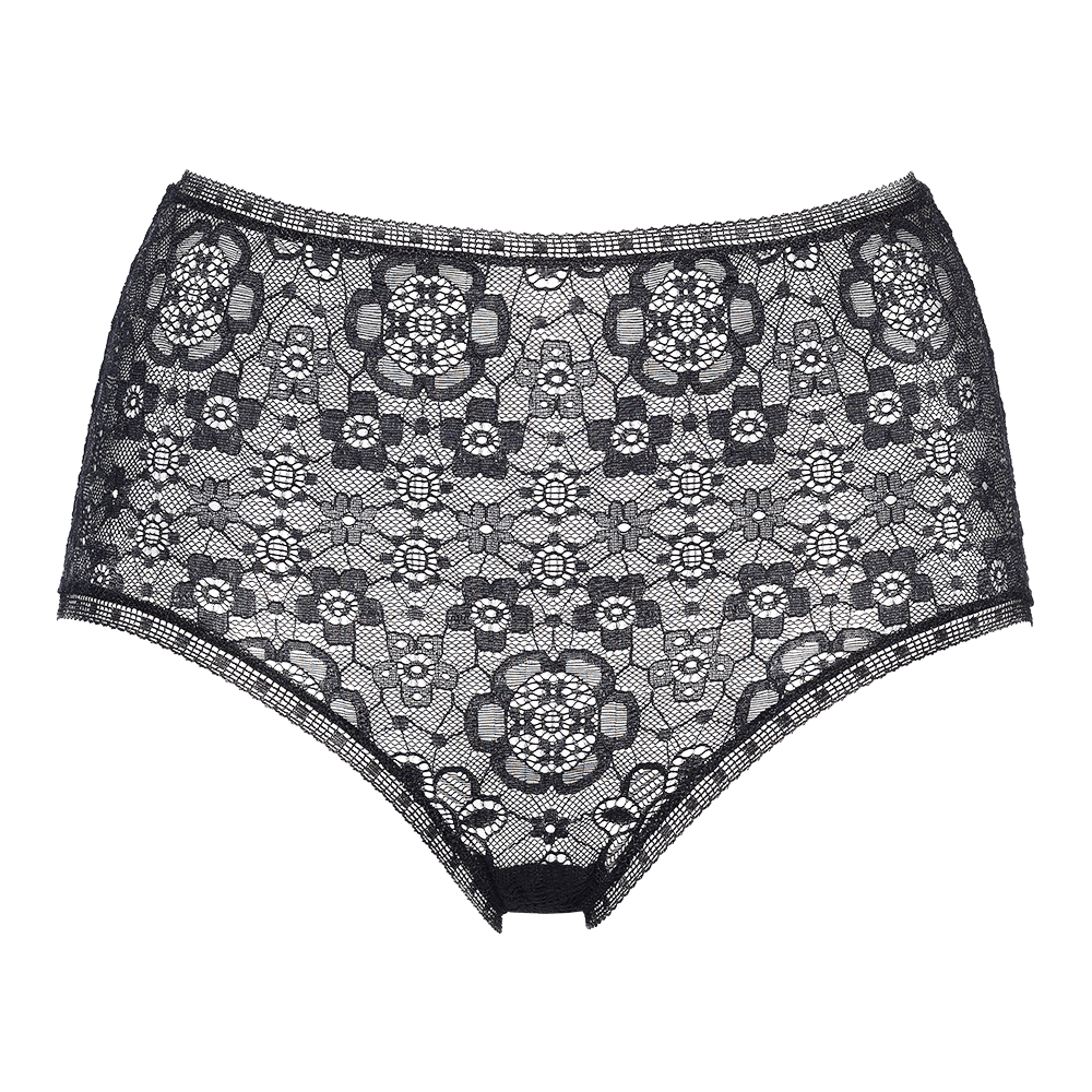 High-waisted briefs. trim: waistband. and thighs.