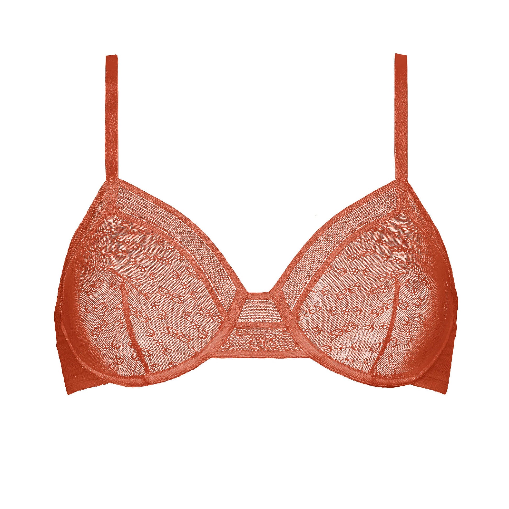 Full-cup bra. Trim : neckline. top of back. under the arms and separator. underbust band construction. bust darts. straight back