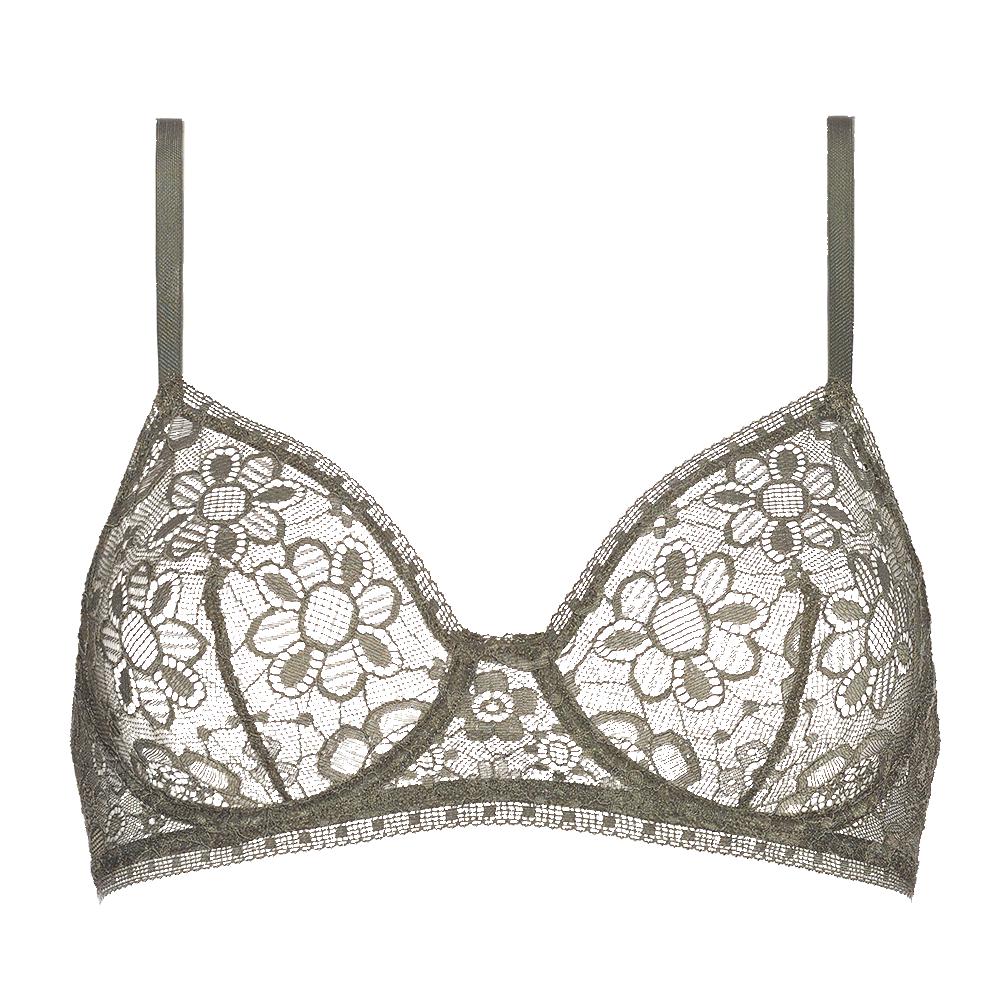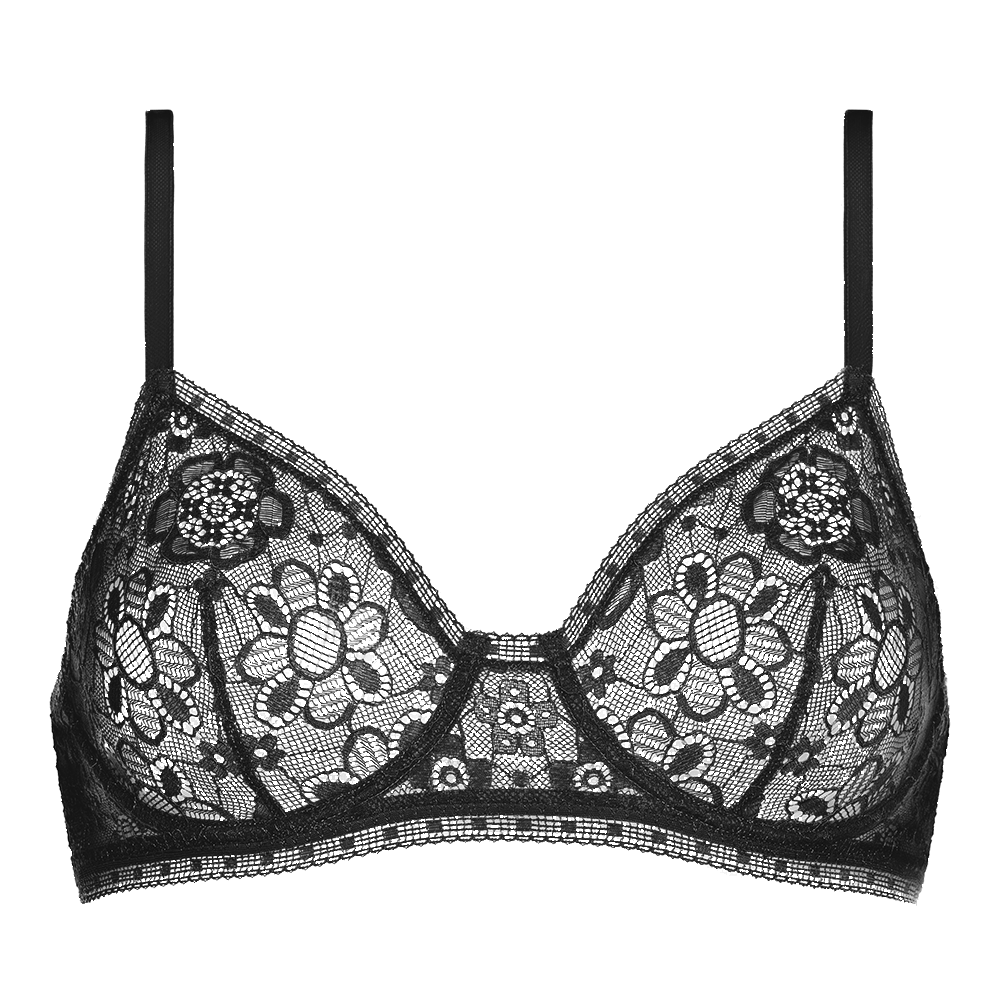 Full-cup bra. trim: neckline. back. under the arms. underbust and separator. underbust band construction. bust darts. straight back.
